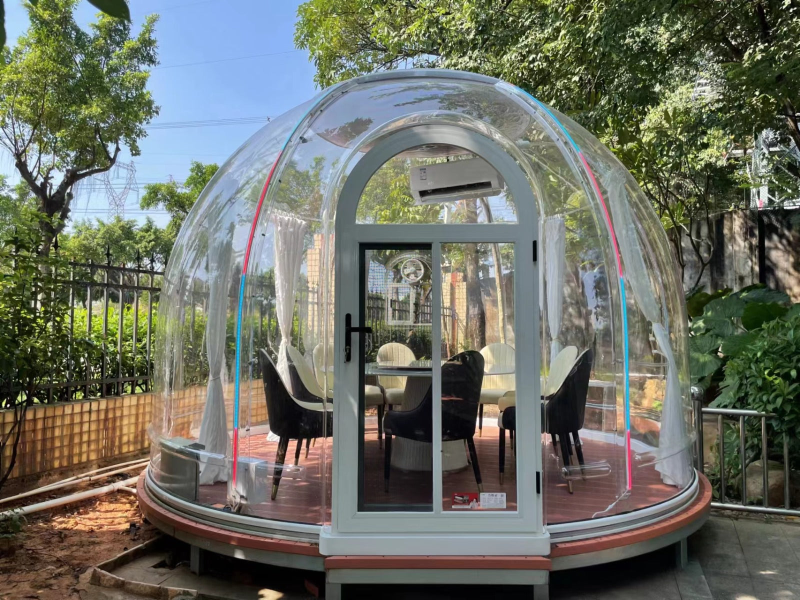 Erleben Sie unvergessliche Momente im Freien bei jedem Wetter mit unseren transparenten runde Kuppeln aus Policarbonat! Diese Kuppeln sind nicht nur ästhetisch ansprechend, sondern auch äußerst robust und zuverlässig. Ihr wasserdichter, nicht brennbarer und schlagfester Korpus bietet zuverlässigen Schutz vor Stürmen, starkem Regen, Hagel, Orkanen und sogar starkem Schneefall.