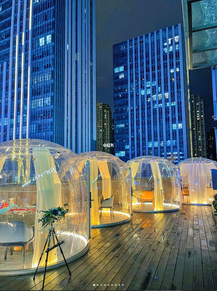 Runde Kuppeln eröffnen nahezu unbegrenzte Einsatzmöglichkeiten. Im privaten Garten können sie als gemütlicher Wintergarten, elegante Poolüberdachung, Gartenhaus zum Entspannen oder stilvolle Grill-Lounge gestaltet werden. In der Gastronomie schaffen sie zusätzliche Sitzplätze auf offenen Terrassen und bieten Gästen zuverlässigen Schutz vor Wind und Wetter. In größerem Format verwandeln sich die Kuppeln in moderne Igloo-Appartements oder Pavillons, die sich ideal für die Vermietung in Hotels, Camping- und Glamping-Anlagen eignen.