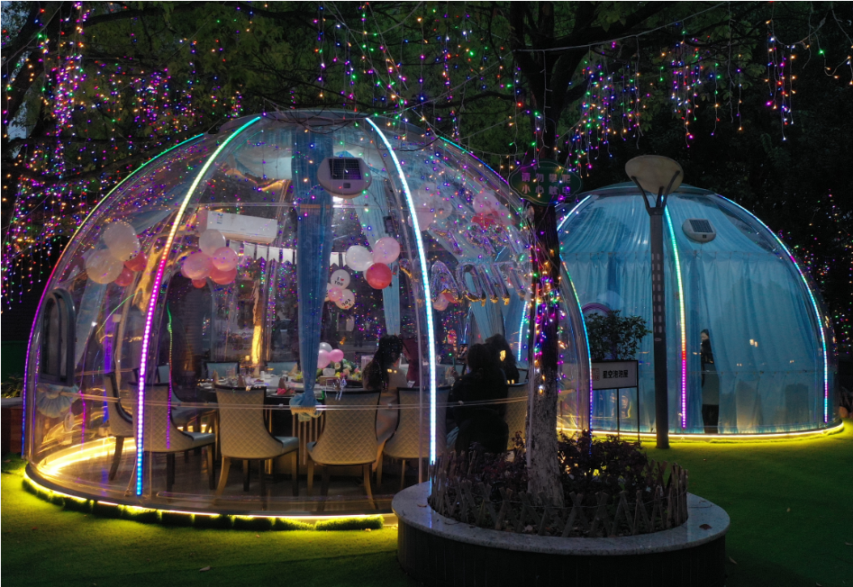 Runde Kuppeln eröffnen nahezu unbegrenzte Einsatzmöglichkeiten. Im privaten Garten können sie als gemütlicher Wintergarten, elegante Poolüberdachung, Gartenhaus zum Entspannen oder stilvolle Grill-Lounge gestaltet werden. In der Gastronomie schaffen sie zusätzliche Sitzplätze auf offenen Terrassen und bieten Gästen zuverlässigen Schutz vor Wind und Wetter. In größerem Format verwandeln sich die Kuppeln in moderne Igloo-Appartements oder Pavillons, die sich ideal für die Vermietung in Hotels, Camping- und Glamping-Anlagen eignen.