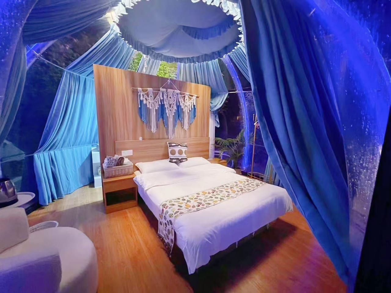 Die Kuppeln sind UV-beständig und schallisolierend, wodurch eine ruhige und geschützte Atmosphäre entsteht. Sie eignen sich perfekt für ein gemütliches Kurzzeitwohnen in malerischen Naturlandschaften – wetterunabhängig und mit höchstem Komfort!