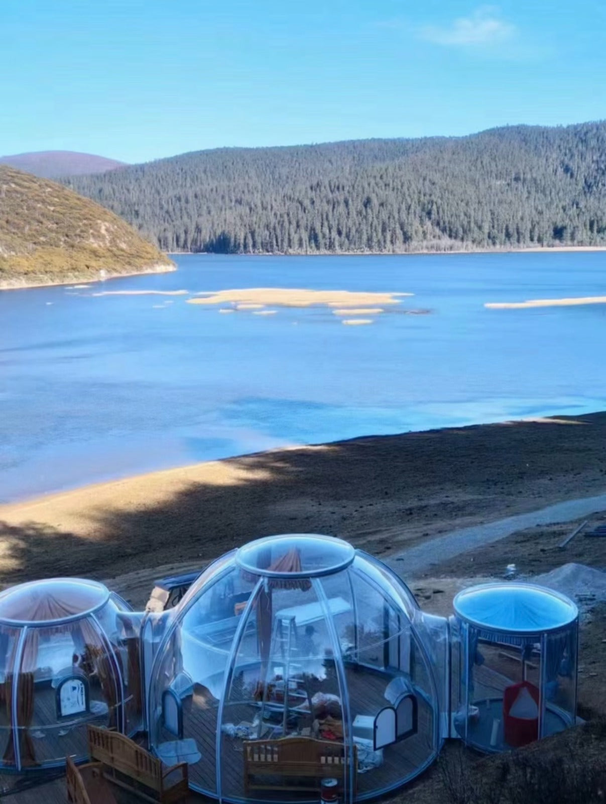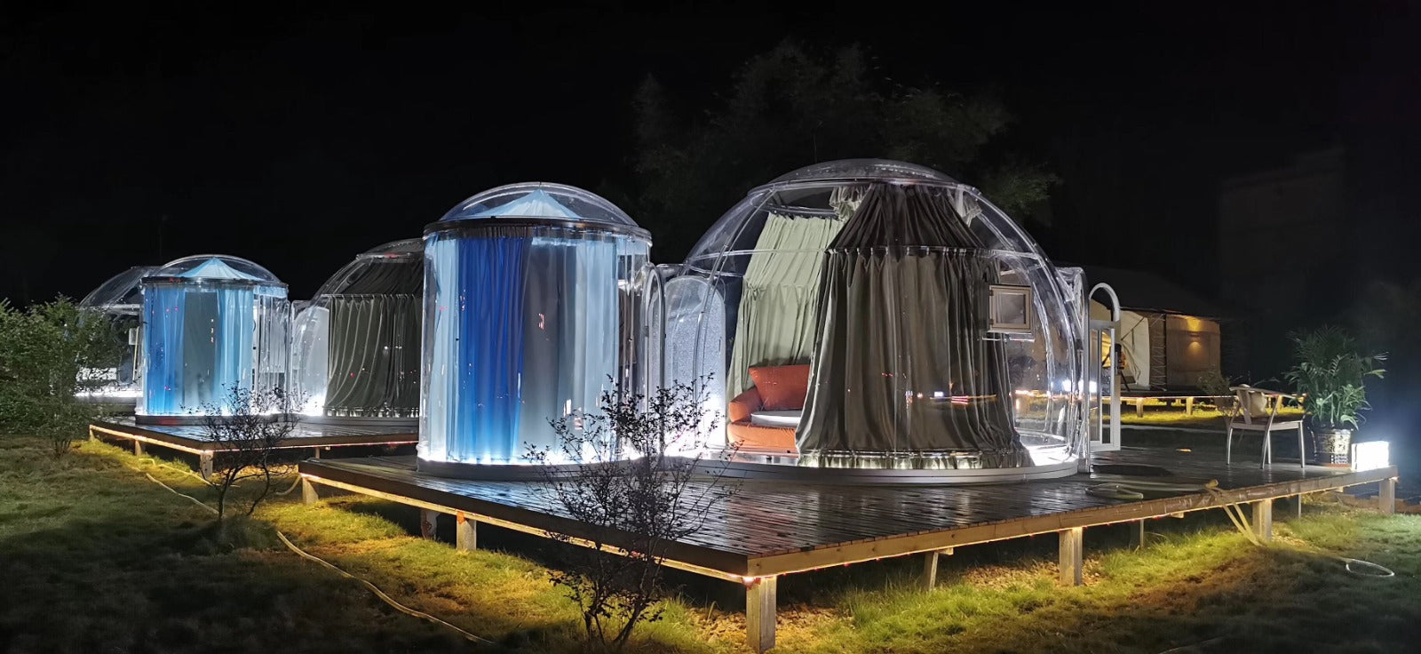 Die Kuppeln sind UV-beständig und schallisolierend, wodurch eine ruhige und geschützte Atmosphäre entsteht. Sie eignen sich perfekt für ein gemütliches Kurzzeitwohnen in malerischen Naturlandschaften – wetterunabhängig und mit höchstem Komfort!
